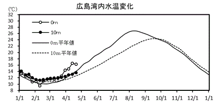 | 湾内平均 | 16.3 | 28.8 | - | 15.1 | 31.5 | - | 14.1 | 32.6 | - | 13.6 | 33.0 | - |
